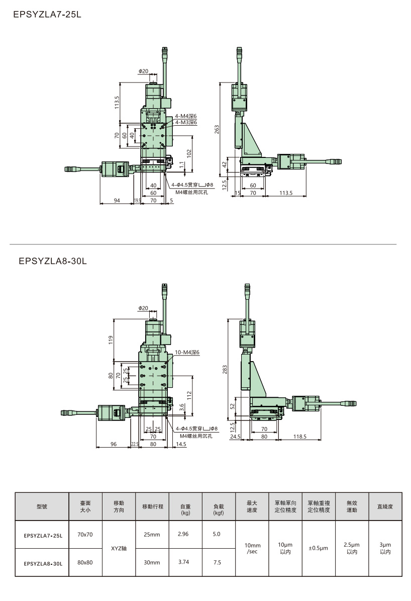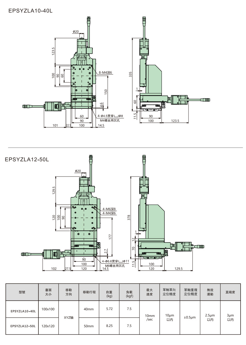 - Unidirectional positioning accuracy(μm):