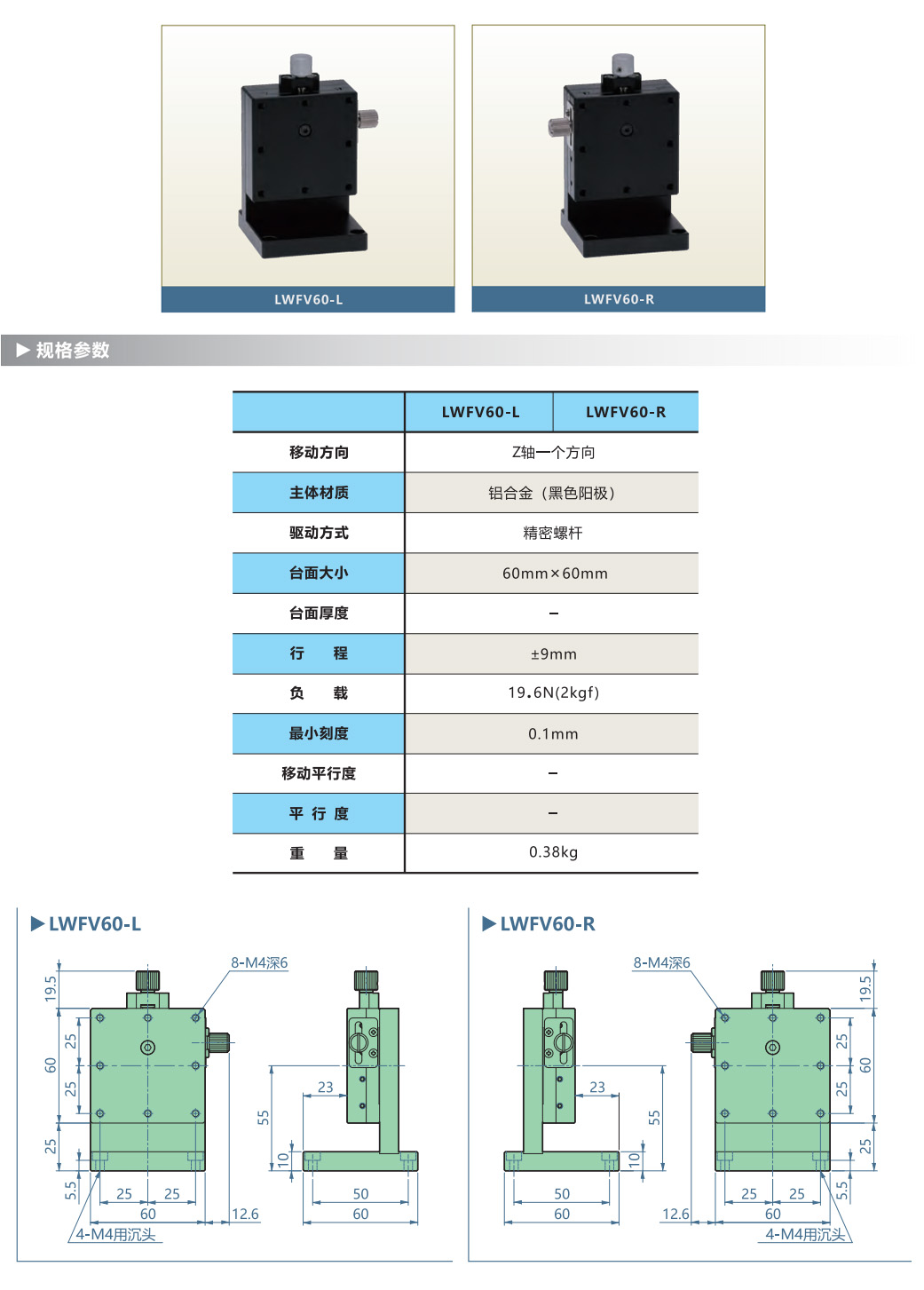 1. It adopts precision screw drive, with 1 rotation of the knob corresponding to 0.5mm.